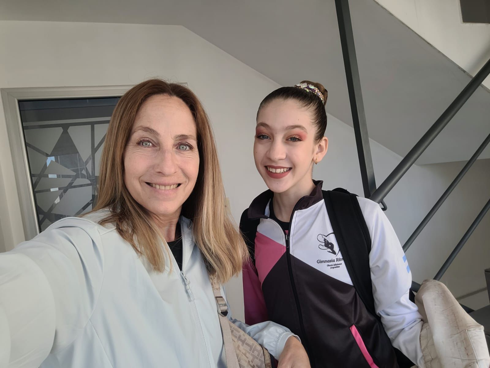 La gimnasta estuvo acompañada por su entrenadora, Natalia Ottaviano.